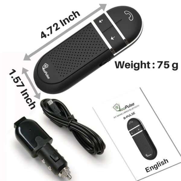 Accessories supplied: The kit comes with a manual in English, a cigarette lighter charger and a cable. Simply recharge your hands-free kit either on your cigar lighter or on your computer.